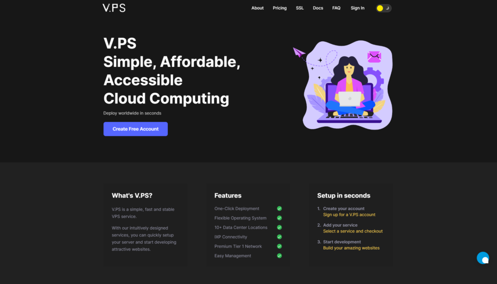 V.PS官网:V.PS (vps.hosting),如何注册V.PS账号?打开后,点页面右上角“Sgin In”进入新页面按提示Create Account。