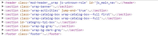 如果条件允许(如移动端,兼容ie9+,如果ie8+就针对ie8引入html5.js吧),是时候开始考虑使用html5语义化标签。如header,footer,section,aside,nav,article等,这里我们截图看一个整体布局