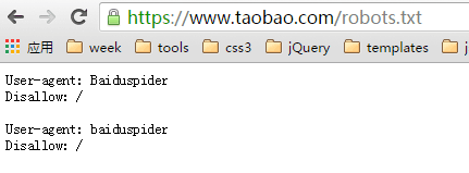 (另一种方法: 建立一个空的 “/robots.txt” 文件, 或者不使用robot.txt。)